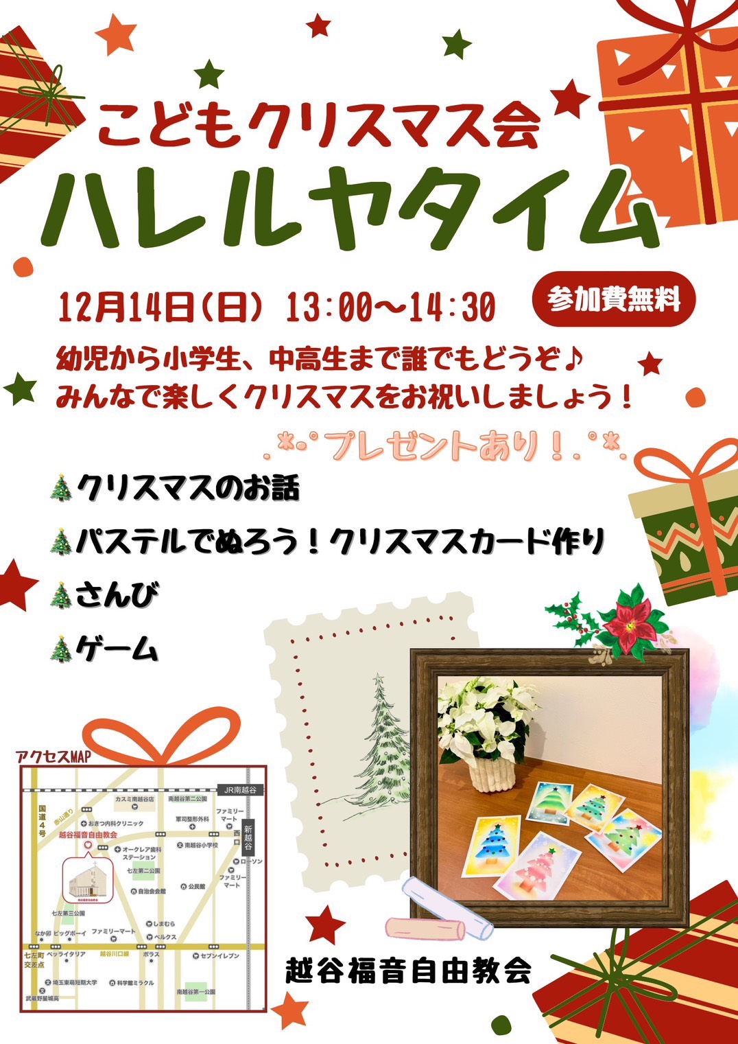 12月14日㈰にはこどもクリスマス会「ハレルヤタイム」を行います。